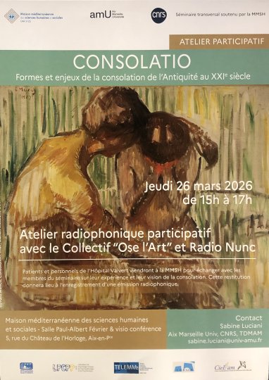 C’est dans le cadre du séminaire inter-laboratoires de la Maison Méditerranéenne des Sciences Humaines et sociales, intitulé « Consolatio (formes et enjeux de la consolation de l’Antiquité au XXIe siècle) », que GreenValley a proposé une émission en direct en s’intéressant à la question « l’Art peut-il consoler ? »